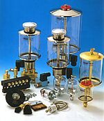 A range of gravity and force feed oilers for lubricating single or multiple points and for use in conjunction with brushes to lubricate conveyor chains. Reservoirs are available in Plexiglas or glass and range capacity from 14cc to 3 liters. Solenoid operation and timers are optional.